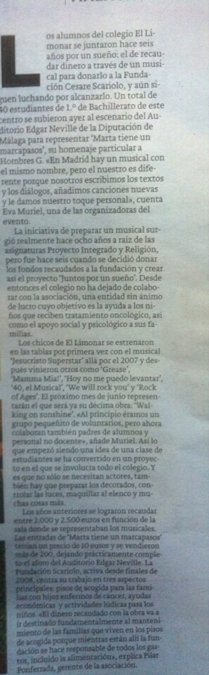 Noticia en Diario Sur (papel) del Musical Marta tiene un marcapasos (Colegio el Limonar):