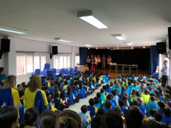 El lunes 23 vivimos una mañana de sorpresas con este bonito acto. Una marea de #heroesxsupervalores todos espectantes para escuchar los nombres de los premiados. En el salón de actos del @ColegioLimonar se dieron cita todos los profesores,representantes de la @AmpaLimonar, incluso la mascota de la biblioteca @BibLimonarMlg : «Leo», y los cursos de primaria, que fueron los primeros, seguidos de los de secundaria y, para terminar, los de infantil ya en sus clases y patio.